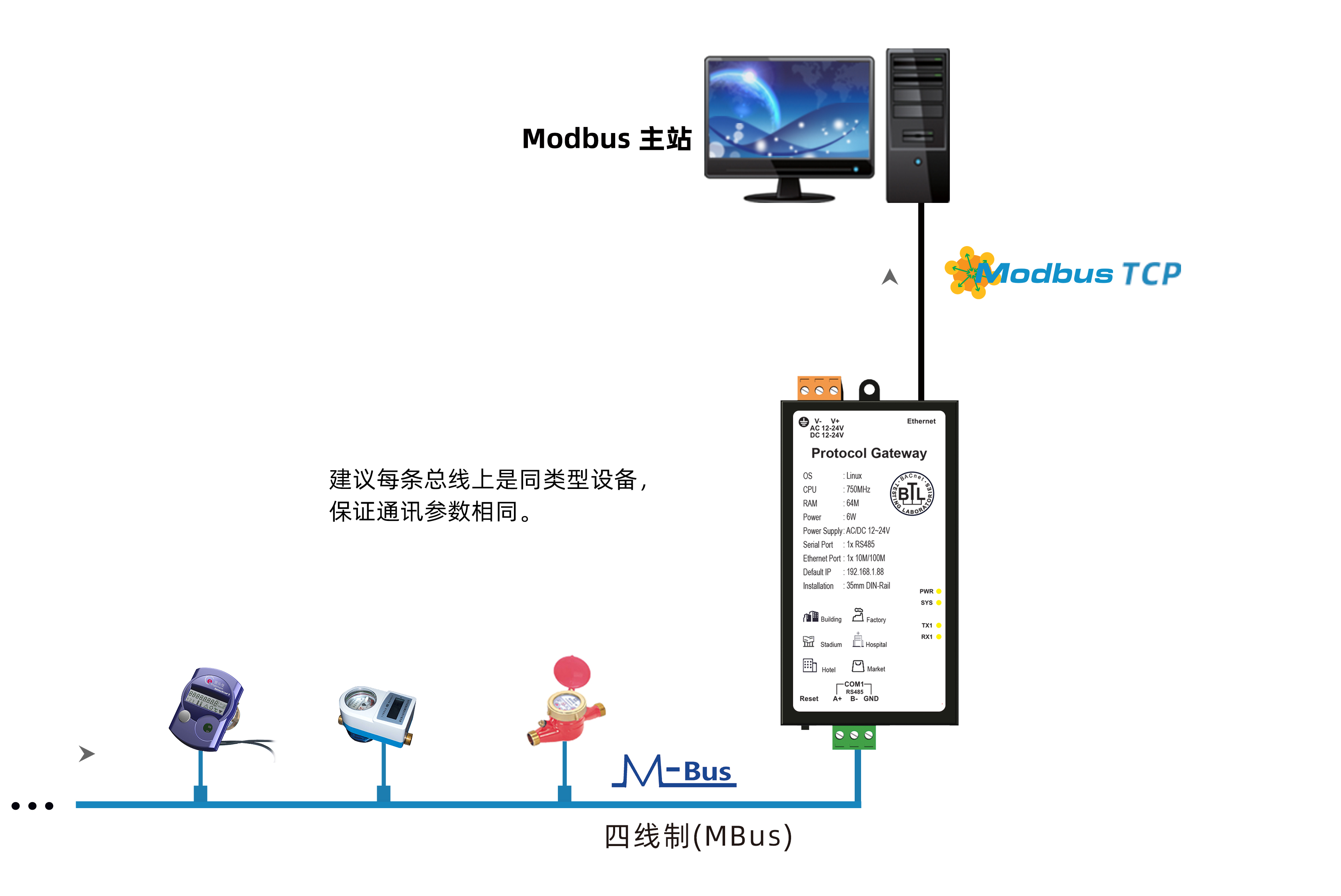 | -支持采集Modbus、BACnet协议同时转为Modbus TCP/RTU服务器; |