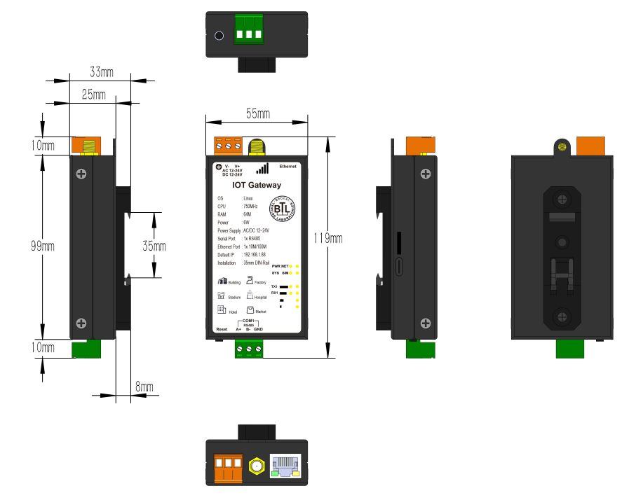 IOT边缘组态网关HMI1001-Lite-4G有1个网口,1个RS485串口,动态支持256点,支持采集Modbus、BACnet协议同时转为BACnet服务器、Modbus服务器、OPC UA服务器、MQTT服务器、IEC61850服务器(需定制),开放HTTP WEB服务被第三方的系统集成。同时具微信报警、短信平台报警、钉钉报警、邮件报警、MQTT服务、工程上传云端等功能。网关使用X2View软件做配置 。用户可根据现设备的点表进行配置,转成标准BACnet服务器、Modbus服务器,上传到硬件网关中,BACnet/Modbus客户端就可以通过网关访问现场设备的数据。 注意:该网关采集端Modbus寄存器10进制地址是从1 (Base1)开始,16进制地址从0 (Base0)开始;转发端的Modbus寄存器基地址都是从1 (Base1)开始。